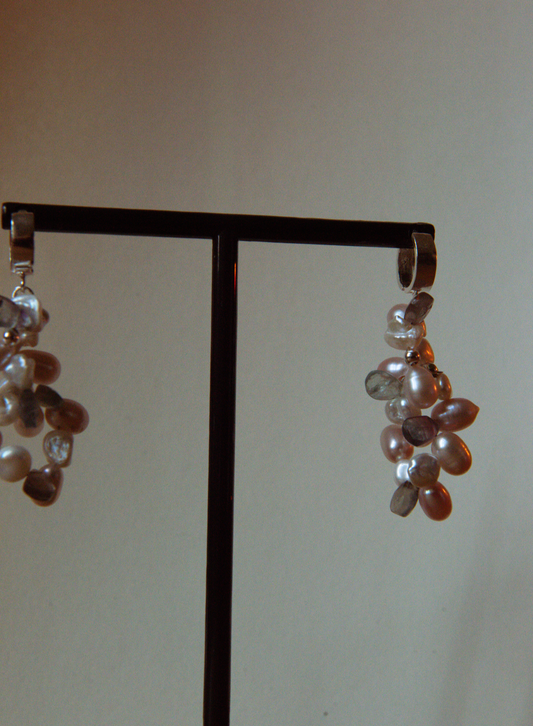 (02) FLUORITE AND NATURAL PINK FRESHWATER PEARL EARRINGS