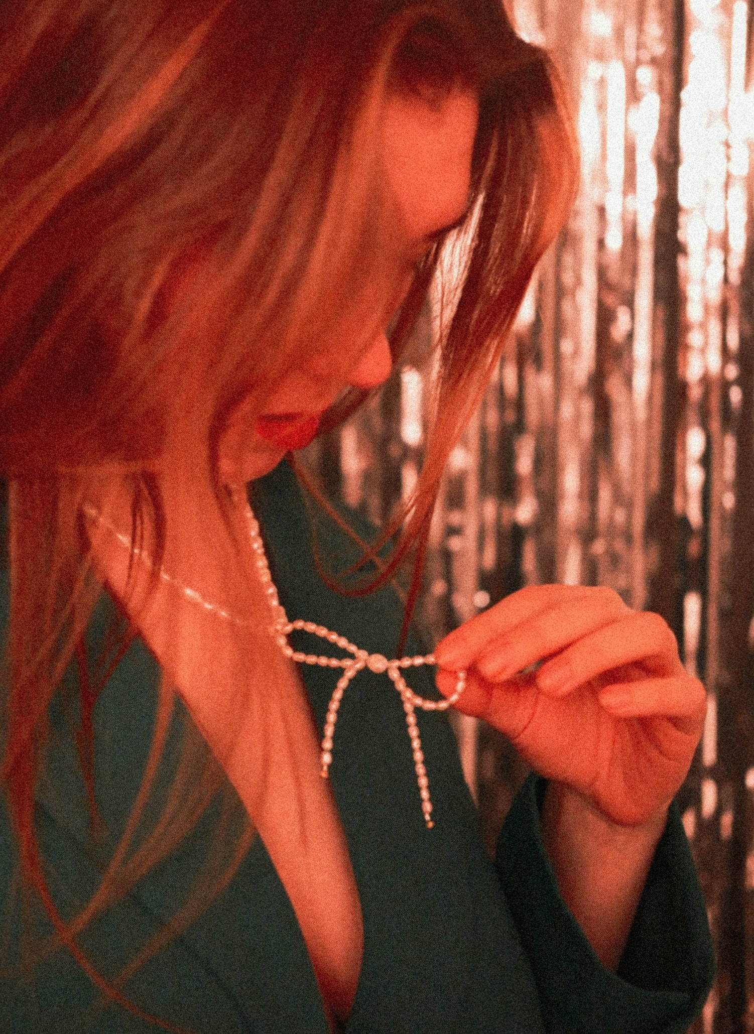 Stunning freshwater pearl necklace with a hanging delicate pearl bow. Measures 17 inches as a necklace and the drop is an extra 3/4inches with the bow. Adjustable gold plated clasp is included.